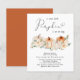 Um elegante convite de chá de fraldas, amigável em termos de orçamento, que apresenta "uma doce abóbora está a caminho" em uma simples tipografia e um roteiro com um inchaço cardíaco e aquarelas de abóboras laranja e creme e buquês florais. Especificar o sexo do bebê, se desejado (por exemplo, "está a caminho").
