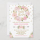 Convite de chá de fraldas doce e cinzento com aspersão de cor rosa e esbranquiçada, cor d'água, cor floral e molhos de confete dourado