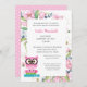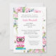 Convite De Chá de fraldas Floral De Coruja De Livro Rosa. Construindo uma Biblioteca para uma menina com este convite para o chá de fraldas do livro. Coruja bonita sentada numa pilha de livros. Adicione os detalhes do seu chá usando nosso modelo fácil.