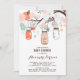 Convite para chás de fraldas femininos e caprichosos com ilustrações de jarras de pêssego e de menta, flores, corações e aves-vivas. Este convite para chá de fraldas é perfeito para chás de primavera e verão. Outras cores estão disponíveis.