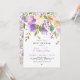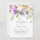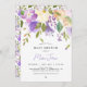Convite para chá de fraldas floral de lavanda em estilo minimalista com buquê de flores roxas lavandas e padrão de volta. Você pode personalizar este convite com seus próprios detalhes na seção "Personalizar este modelo".