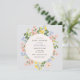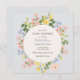 Um delicado convite de chá de fraldas com flores de aquarela pastel moles, cor-de-água, em rosa, amarelo e azul, ao redor de um elegante layout circular em um fundo leve. Perfeito para celebrar uma nova chegada com um toque eterno e botânico.