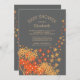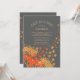 Linda e neutra em termos de gênero Flores de outono Convite para Chá de fraldas com na moda e ouro chic flores amarelas e alaranjadas colocadas sobre um fundo de cores de cinza tradicional. Sacudir o nosso chá de fraldas de tendências para ver uma coordenação popular de volta para um toque especial extra. Perfeito para um chá de fraldas ou chá de fraldas para rapazes