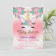 Bonito como pode ser o convite do Chá de fraldas Unicórnio. Apresenta nuvens, fontes de folha de ouro falsas, sotaques e fundos com flores cor-de-rosa, roxa e rosa.