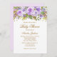 Convite para Chá de fraldas Floral Dourado Roxo