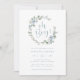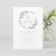 Convite para Chá de fraldas Floral Elegante. Elegante e romântico, a Suíte de Casamento Floral de Azul Dusty apresenta uma linda cor d'água azul poeirenta pintada à mão, rosas cremes e folhas verdes sagazes organizadas como uma coroa na moda. Encontre itens correspondentes na Suíte de Casamentos Azuis Dusty.