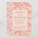 Flores cor-de-rosa e cor-de-rosa por toda a design como um convite para o chá de fraldas moderno. O design Floral continuou na parte traseira da placa.