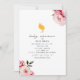 Ilustração do pintinho de bebês com designs florais nos cantos. O lado oposto é cor-de-rosa-claro.