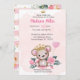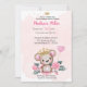Celebre a chegada do seu doce pacote de alegria. Esta design apresenta um urso bonito vestindo uma coroa de tiara dourada, sentada sobre flores cor-de-rosa, e segurando um balão de coração rosa. O convite perfeito para as mulheres que amam ursos e uma princesa. Use o botão Personalizar para adicionar os detalhes de sua festa para um convite de chá de fraldas gentil.