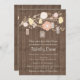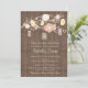 Design de convite à madeira floral e rústica, com flores e frascos de mason pendurados num belo galho para chá de panela, chá de fraldas, aniversário e muito mais.