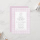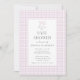 Celebre seu pequeno estilo com este convite para chá de fraldas cor-de-rosa com gingham. Apresentando um fundo de verificação de gingham cor-de-rosa suave com um delicado sotaque de arco, este design é doce e pré-pago, perfeito para honrar uma menina.