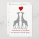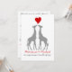 Um macho cinza e uma girafa fêmea estão tão apaixonados e muito felizes em ouvir que estão esperando um monte de alegria. Um coração vermelho paira sobre suas cabeças para que seu amor se torne mais forte para uma nova vida. Todo texto pode ser personalizado.
