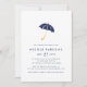 Moderno e mínimo com uma ilustração marinho azul de guarda-chuva em aquarela, estes convites para chuveiros de bebês apresentam uma inscrição moderna e um sutil padrão de diamante pontilhado no lado oposto.