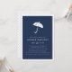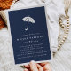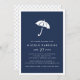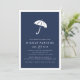 Moderno e mínimo em azul-marinho chic com uma ilustração de guarda-chuva e letras brancas nítidas, estes convites para chuveiros de bebês são uma escolha perfeita para as mães modernas com garotinhos-na moda no caminho. Cartões invertem para um sutil padrão de diamante pontilhado.