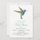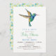 O convite para chá de fraldas do garoto de beija-flor. O convite apresenta um Hummingbird verde e azul e um padrão floral.