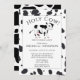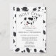 Convite para Chá de fraldas de Impressão de Vaca Bonita para um rapaz com um adorável passado de impressão de vaca e vaca. Adicione os detalhes da sua festa para esta celebração muito especial. Excelente para um chá de fraldas temático fazenda,