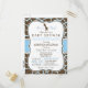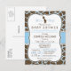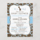 É um menino! O chá de fraldas de girafa azul e marrom bonito, elegante, convida para o padrão de impressão de girafa azul-bebê e azul-claro com o visual formal de vintage. Excelente para chás de fraldas temáticos de animais do zoológico. Convite de forma de colchete retrô.