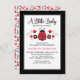 Uma pequena joaninha está a caminho! Convite de chá de fraldas de joanilha vermelha e preta, bonito, com uma borda escalada. Um convite menor para um orçamento menor. O verso do convite é decorado com um padrão floral vermelho e preto. Personalize-o para o seu chá de fraldas. Projetado para você pelo Blackberry Boulevard.
