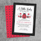 Uma pequena joaninha está a caminho! Convite para chá de fraldas de ladybug vermelho e preto. A parte de trás do convite é decorada com um padrão de bolinhas. Personalize-o para o seu chá de fraldas. Projetado para você pelo Blackberry Boulevard.