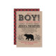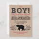 Celebre em estilo com este convite para chá de fraldas lumberjack. Apresenta uma inscrição ousada, um urso entre a folhagem, com um padrão de xadrez de búfalos nas costas. Faz um tema adorável para o seu chá.