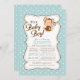 Um convite moderno ao chá de fraldas de safari ousado e brilhante que inclui um macaco marrom giro giro para um chá de fraldas para rapazes. Nosso convite da selva contemporânea é colocado em um fundo de bolinhas de faixa azul e branca e tem um retorno correspondente para um toque especial extra. Perfeito para um chá de fraldas temido de safari doce.
