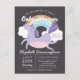 Composto por uma escrita cursiva divertida e uma tipografia escrita à mão sans serif; tudo contra um pano de fundo de preto com um arco-íris colorido e um unicórnio roxo. Este foi projetado por materiais de terceiros selecionados, exclusivos para o Zazzle. Disponível aqui: http://www.zazzle.com/selectpartysupplies