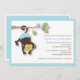 Um adorável macaquinho pendura com a cauda de um galho azul florescente neste doce convite de chá de fraldas para um rapaz.