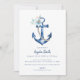 Convite para Chá de fraldas Náutico Costeiro | Tema do Bebê-Anjo Azul Celebre seu pequeno marinheiro com este charmoso convite para chás de fraldas náuticos costeiros! Apresentando uma âncora azul macia e um verde delicado, este design combina o estilo litoral com o charme do eterno. Perfeito para praia, iate clube, ou chás de bebês de temas náuticos. Personalize facilmente com os detalhes do seu evento para criar um convite para comemorações emocionante e memorável.