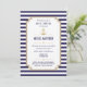 Personalize este Convite para Chás de fraldas Náuticos Neutros na moda. Design azul e branco listrado, definido como um modelo para uma fácil personalização perfeita para uma menina ou um menino. Abaixo está um link para um adesivo Obrigado: