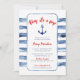Convite De Chá de fraldas Náutico, De Cores Aquáticas Por Metro-Eventos. design de marinheiro azul e vermelho para o chá de fraldas de um menino. Projetado com uma âncora e listras com efeito aquarela, este design de convite é perfeito para o chá do seu bebê. Fornecimentos adicionais de coordenação de chás de fraldas estão disponíveis em Metro-Event.com e Metro-Events no Zazzle.