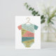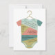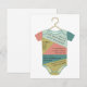 Um tema de chá de fraldas com uma ilustração do conjunto para bebês multicolores em um cabide. Personalize o texto com detalhes da sua ocasião.