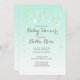 Mole e sonhadora, este convite para chás de fraldas apresenta lua crescente e borrifo de ouro e estrelas brancas sobre a menta gradiente e fundo branco. Clique para personalizar ainda mais para alterar o estilo e a cor ou o tamanho da fonte.