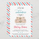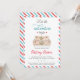 Viagem convite temático em azul e vermelho para um chá de fraldas ou borrifo. Por favor, note que o convite não é um cartão postal real e deve ser enviado em um envelope. Se você quiser pedir esta design com um cartão postal de volta, por favor, entre em contato comigo.
