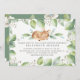 Veado adormecido bonito enquadrado com verde foliar e flores cor-de-rosa. Sacudir a nossa floresta convida para ver uma floral coordenada de volta para um toque especial extra.