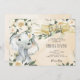 Um bonito design floral com flores de marfim e verde, e um elefante bebê com flor neutra no cabelo. Texto tipográfico "Oh baby" na faixa. Coordenação da aquarela do lado oposto. Fácil de editar ou excluir os campos de texto disponíveis para personalizar as informações com seus próprios detalhes para um convite personalizado e profissional. Muitos itens correspondentes nesta coleção rústica. Visite o meu compro para ver a gama de cheios, incluindo autocolantes e etiquetas de endereço, cartões de rsvp e rifas/livros de fralda para cartões para bebês. Crie um pacote de itens usando este adorável design.