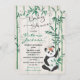 Bonito e doce Urso Panda com pedras de bambu em fundo antigo de linho. Perfeito para um chá de fraldas tropical!