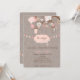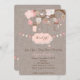 Um convite para chás de fraldas super giro com jarras de pedreiro e flores bonitas num fundo de linho marrom.