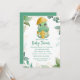 Chá de fraldas de dinossauro Verde, bonito, com fundo de folha e letra verde. Personalize com nosso modelo fácil usando os detalhes do seu chá.