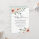 Elegante e delicado, o nosso convite para o chá de fraldas Peach Blossom apresenta flores a cores-d'água em tons mudados de pêssego, cor-de-rosa-pincel e verde-sábio nos cantos, enquadrando seus detalhes de chá de fraldas em letras clássicas fora de preto. Cartões invertidos a sutis faixas verdes tom-on-tone. Uma bela escolha para primavera ou chás de fraldas de verão em jardins ou em ambientes exteriores para meninas a caminho.