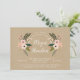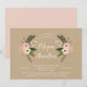 O convite para chás de fraldas chic mostra o nome da noiva em um roteiro elegante de caligrafia em um fundo kraft castanho rústico, enquadrado por pêssego e flores cor-de-rosa, botões e verde. Personalize com os detalhes do seu chá de fraldas abaixo.