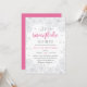 Brrr! Convites chiques para chás de fraldas de inverno apresentam um fundo de silhuetas de neve de cinza pálida com "um floco de neve está a caminho" em letras cor-de-rosa e cinzas. Personalize com os detalhes do seu chá de menina embaixo dos campos de modelo. Cartões invertidos a rosas sólidas.