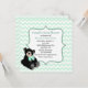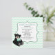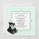 Convite para chá de fraldas de casal quadrado doce, feito em um padrão de fevron verde e branco da casa da moeda, com uma área de texto branca enquadrada pela casa da moeda decorativa, no meio. Gráficos de um doce ursinho preto com um bonito arco verde-menta decoram o canto inferior esquerdo dos convites. Personalize todo o texto para seu chá de fraldas, para um convite elegante que os novos pais vão adorar.