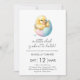Prepare-se para receber um pouco de alegria com nosso adorável convite de chá de fraldas com uma linda aquarela de pintinho amarelo fluffy a partir de seu ovo. O convite é feito contra um fundo branco limpo e lê-se "Um pequeno pintinho está prestes a eclodir!" na escrita moderna, criando uma sensação doce e brincalhona. O verso apresenta um padrão de bolinhas azul e branco do aqua pastel, adicionando um toque de charme ao design. Além disso, é muito fácil personalizar com seus próprios detalhes, fazer um convite especial e exclusivo para seu chá de fraldas. E a melhor parte? Você pode optar por fazer o download instantâneo do convite e começar a planejar seu chá de fraldas imediatamente!