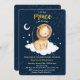 Chá de fraldas do Príncipe Leão Menino Convite Marinho de Folha de Ouro e Dourada Aquarela Estrelas de Lua Nuvem Brilhante