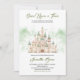 Tenha uma celebração real com este elegante Convite para Chás de fraldas Príncipe. Apresentando um castelo verde, perfeito para acolher seu bebê com um toque de magia e realeza. Quer você esteja planejando um chá de jardim de conto de fadas ou um evento interno real, este convite cria um começo mágico à história do seu bebê. BBS1077