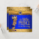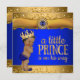 Chá de fraldas Príncipe convidado com uma linda etnia africana-americana bebê que veste uma bela coroa azul e dourada e roupa azul e dourada em um belo fundo azul real e joia dourada. Esses elegantes convites para chuveiros roleais, azuis e dourados príncipe são facilmente personalizados para seu evento simplesmente adicionando seus detalhes no estilo de fonte e na redação de sua escolha. Esta é uma design impressa sem brilho real, joias, folhas, etc.