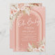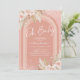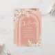 Chamadas de chá de bebê de menina boêmica russa, com um fundo rosado cinza com uma característica arco-íris, folhas secas de palma do deserto com aquarelas, grama-pampas, florais e um modelo chá de fraldas elegante que é fácil de personalizar.