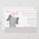 Um convite de chá de fraldas para cinzas modernas e elefantes cor-de-rosa. Perfeito para um chá de fraldas de menina.
