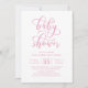 O convite ao chá de fraldas apresenta uma fonte moderna de caligrafia e um design bolinhas traseiro.