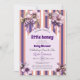 Um tema púrpura Chá de fraldas doce com flores roxas e abelhas! Você pode personalizar este convite com seus próprios detalhes.